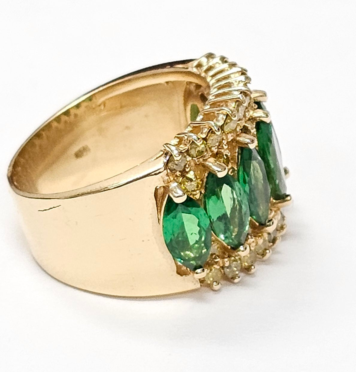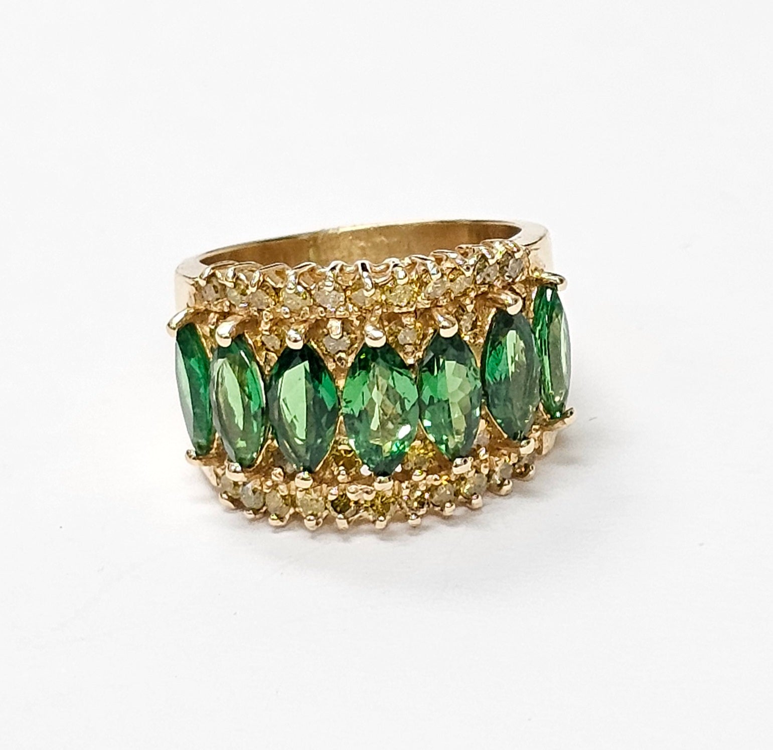 Tsavorite ring with diamonds in 14K Yellow Gold