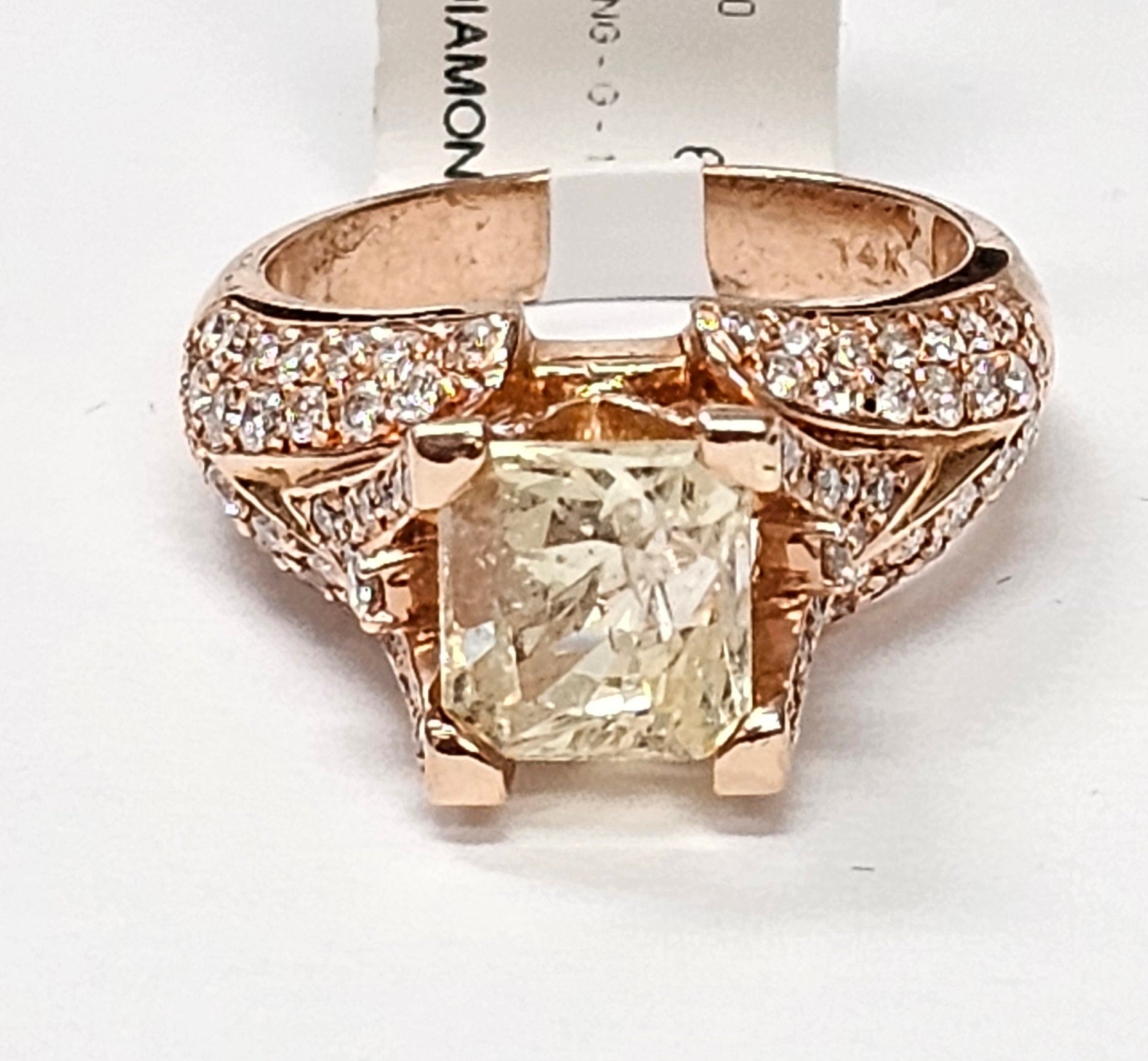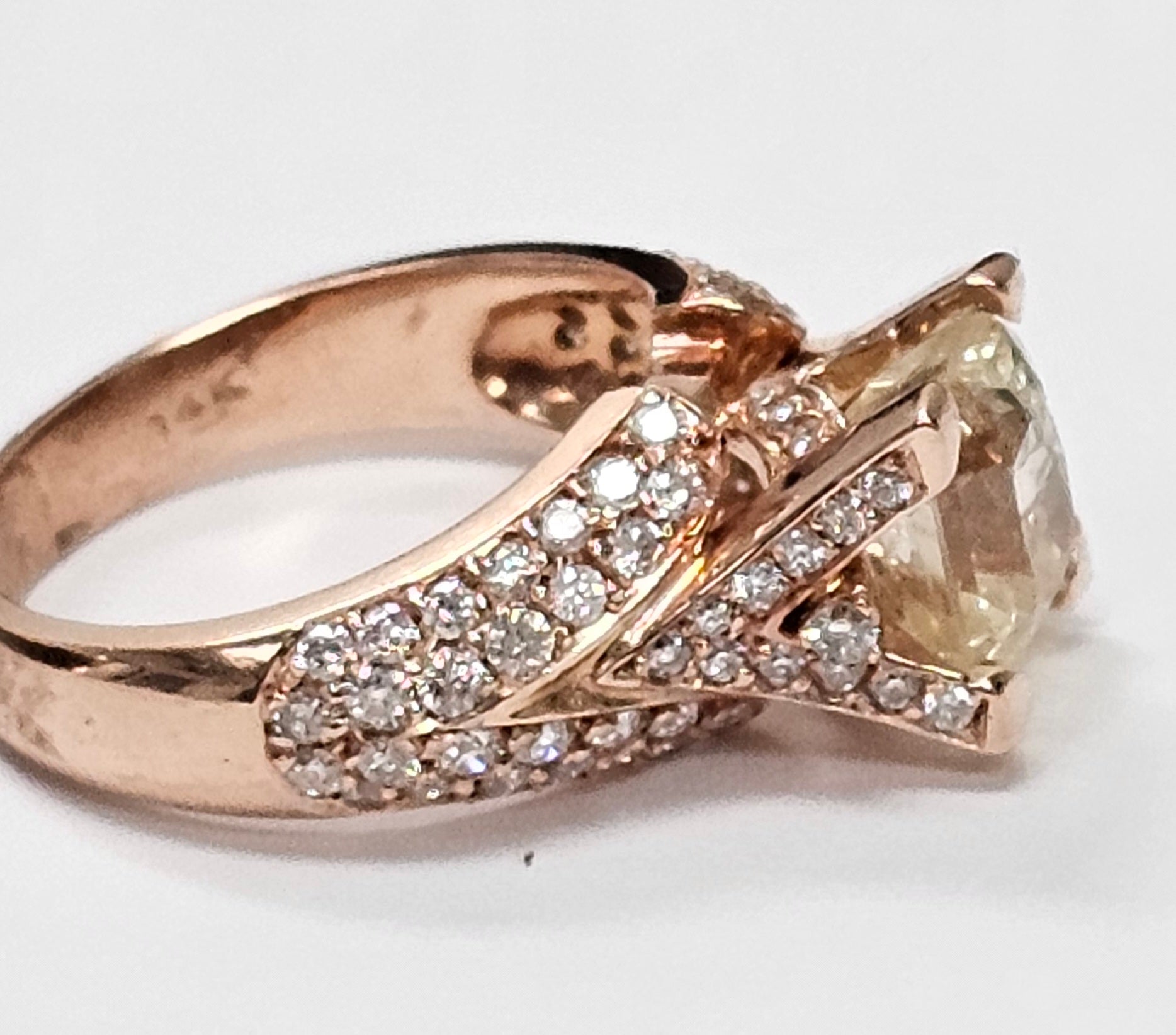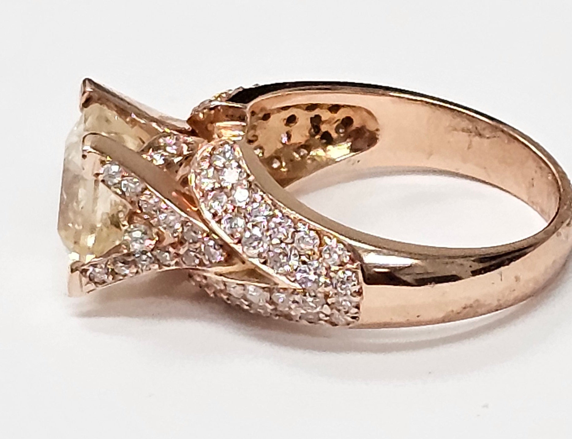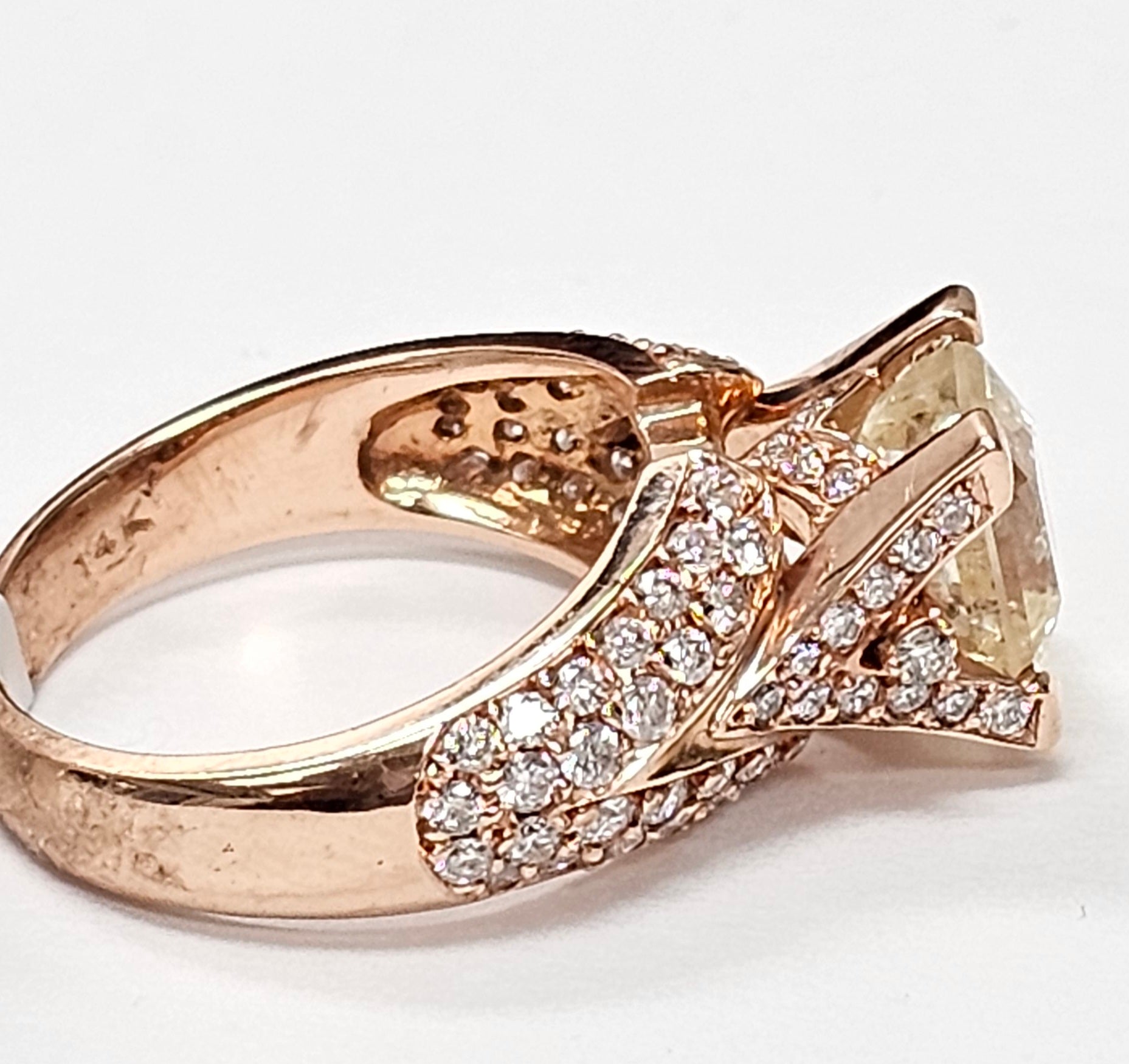 Yellow Sapphire ring with diamonds in 14K Rose gold
